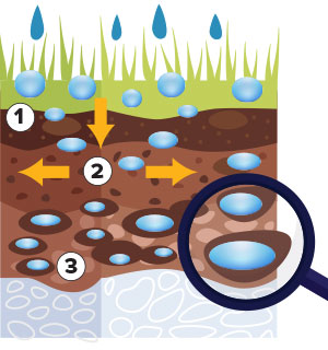 Hydrophobic soils repel water instead of absorbing it. Soil particles are coated with waxy residues. When water is applied to these soils, it beads up, runs off or pools on top of the soil.